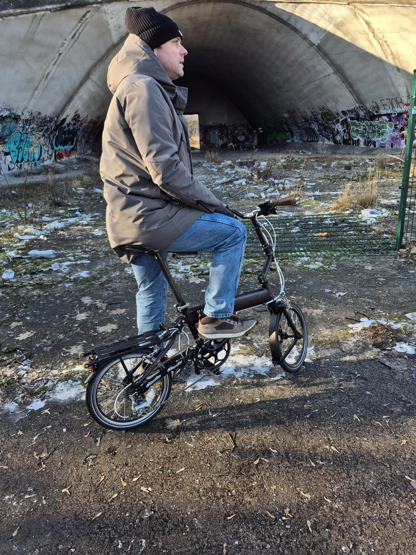 Rower składa się poprzez odblokowanie tylnego zawiasu oraz złożenie przedniego koła i kierownicy. Całość blokuje się po złożeniu umożliwiając przenoszenie roweru w jednej ręce. Złożenie samego tyłu z bagażnikiem umożliwia zaparkowanie roweru.