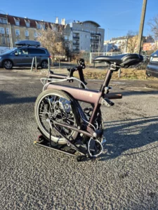 Doskonały rower składany zaprojektowany przez Jon’a Whyte, inżyniera projektującego dla Formuły 1. Łatwy do złożenia, nadający się do zabrania do pociągu lub komunikacji miejskiej.