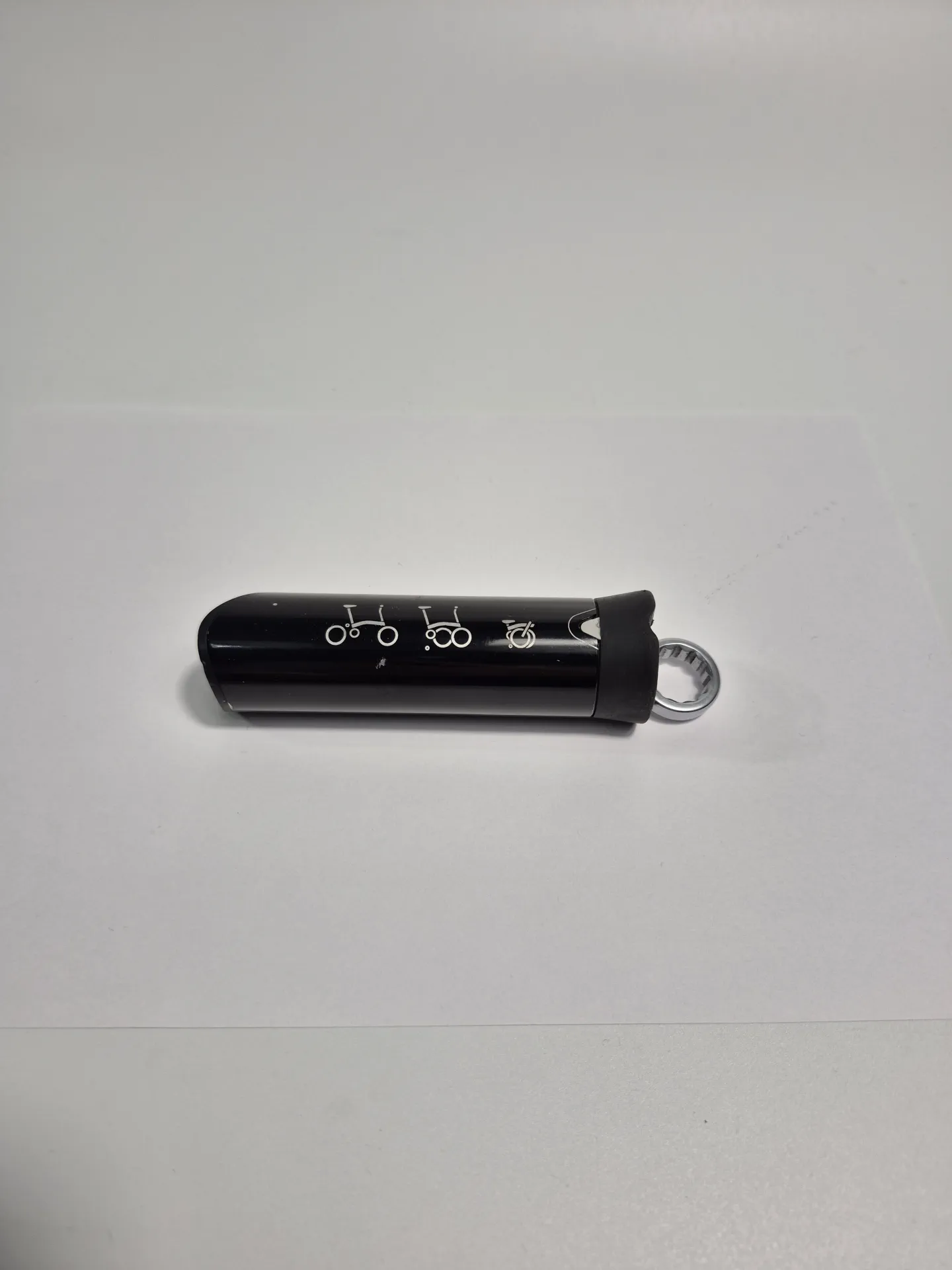 Oryginalny multitool Bromtpona. Umożliwia kompleksową naprawę roweru lub wymianę dętki/opony podczas podróży. Chowany wewnątrz ramy.